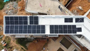 Suministro e instalación de planta solar térmica para climatización de piscina de 60 m. La planta está compuesta por 16 colectores solares de polipropileno los cuales calentarán el agua que transita a través de ellos, una bomba de 3HP, un filtro, una válvula de quiebre al vacío y un sensor de temperatura instalados en un cuarto de máquinas.